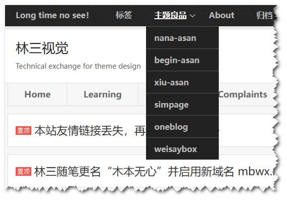 这个weisaybox主题的下拉菜单,还是有一些需要修改的地方。总体上表现为下来的时候黑黑的一块,如果不加分割的话,看起来缺少一点层次感,所以我想着给每一个菜单的上面加一个横线。我试过给他加好几种横线,有虚线的,也有其他线的,最后发现还是这个,sol id 这个样式比较适合我,颜色方面我也进行了调整,最后发现还是555比较匹配。因为如果直接用这个白色fff的话,有点刺眼,做一个淡化处理,效果肯定要好一点。